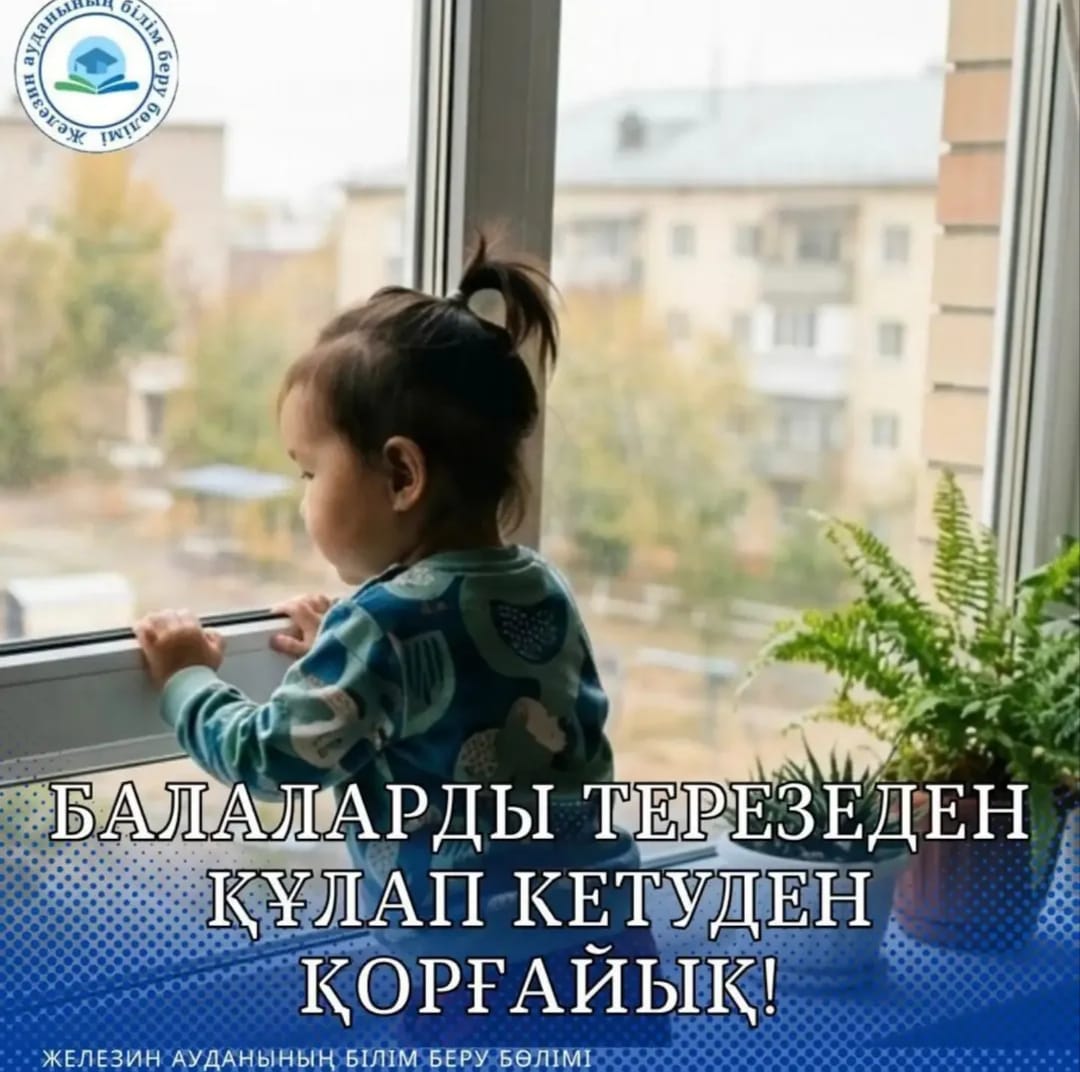 Соңғы жылдары Қазақстанда көпқабатты тұрғын үйлердің терезелерінен балалардың құлау жағдайларының көбеюі алаңдаушылық туғызуда. Өткен жылдың өзінде «112» қызметіне осындай 237 оқиға тіркеліп, оның 45-і қайғылы жағдаймен аяқталған. Бұл жағдайлардың негізгі себептері: • ересектер тарапынан бақылаудың жеткіліксіздігі; • терезелерде қауіпсіздік құрылғыларының болмауы немесе дұрыс қолданылмауы; • терезе конструкцияларының балалар үшін қауіпті болуы. ЕСКЕ САЛАМЫЗ: Қолданыстағы нормативтерге сәйкес тұрғын үйлердегі терезелер қауіпсіздік құлыптарымен немесе арнайы шектеуіш құрылғылармен жабдықталуы тиіс. АТА-АНАЛАРҒА МАҢЫЗДЫ ЕСКЕРТУ: • Балаларды қараусыз қалдырмаңыз, әсіресе ашық терезе жанында; • Терезе алдына жиһаз қоймаңыз (бала шығып кетуі мүмкін); • Терезелерге арнайы бұғаттауыштар мен шектеуіштер орнатыңыз; • Москит торлар баланы ұстап қалмайтынын ұмытпаңыз! Баланың қауіпсіздігі – ең алдымен сіздердің жауапкершілігіңізде. Қарапайым сақтық шаралары қайғылы жағдайларды алдын алуға көмектеседі. Балалардың өмірі мен денсаулығы – басты құндылық!