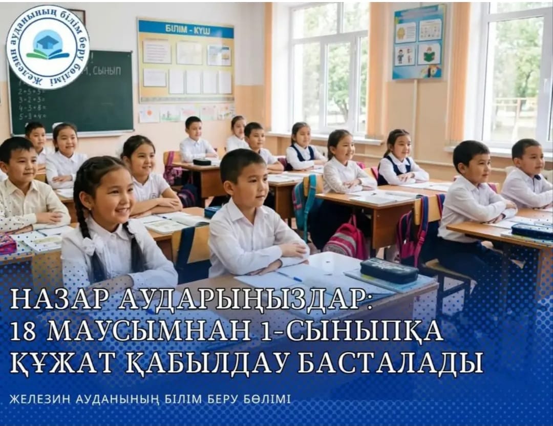 Павлодар облысында 1-сыныпқа құжаттарды қабылдау ағымдағы жылдың 18 маусымынан 31 тамызына дейін жүргізіледі.