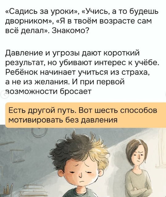 Создавайте атмосферу поддержки.  Вместо упрёков — слова доверия: «Я верю, что у тебя получится».