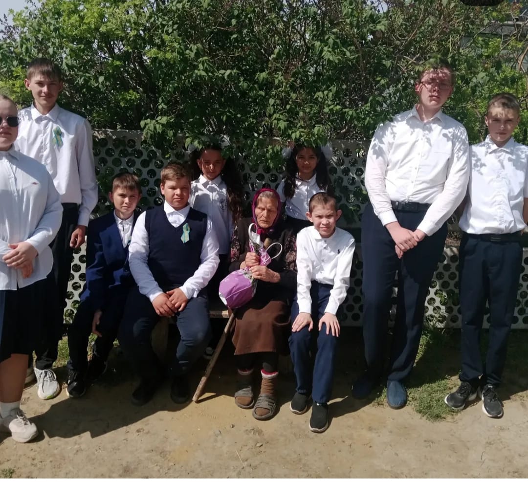 Коллектив и учащиеся школы поздравили труженицу тыла, Подсосонную Варвару Фёдоровну, с Днём Победы.